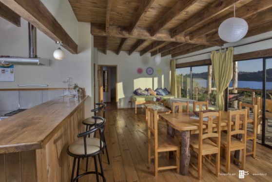 Large cottage house (100 square meters) with wooden hot tub and large terrace. Located on the shore of Llanquihue Lake with access to the lake. All the rooms are overlooking the lake and the house is located near a small native forest.